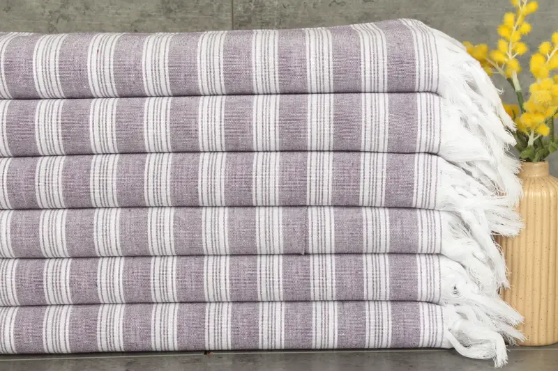 Turkish cotton towels, ensuring superior absorbency and softness. Characterized by their 40x71 inches/100x180 centimeters dimensions and 210 grams weight, these towels are meticulously hand-woven with a tolerance of 1-2.5 cm. Resulting in a pre-shrunk status, they maintain their size post-wash.