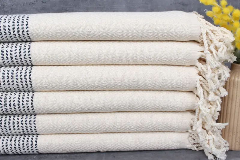 Turkish cotton towels, characterized by their high-quality, 100% organic Turkish cotton construction, ensure superior absorbency and durability. These towels exhibit a weight of 450 grams per piece and feature dimensions of 40x71 inches or 100x180 centimeters, allowing for a variety of uses. Tolerances in hand-weaving permit size variations within a range of 1-2.5 cm.