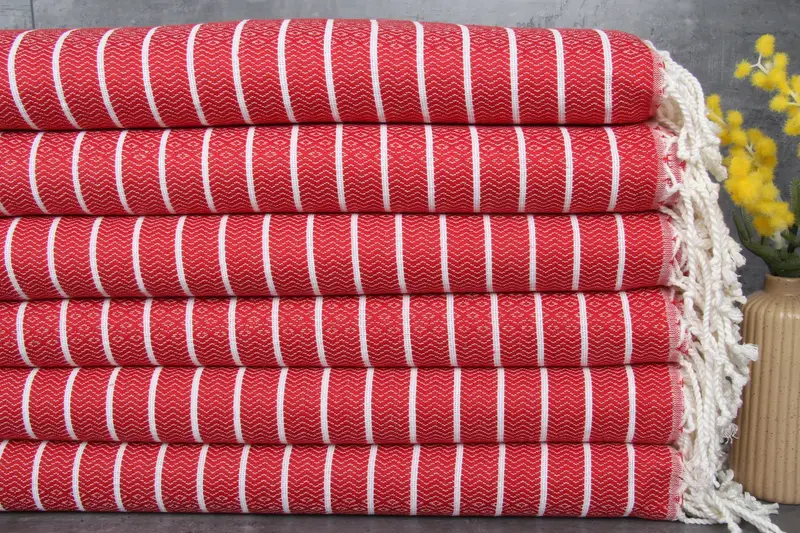 Turkish towels are distinguished by their use of %100 organic Turkish cotton, which ensures natural dyeing and superior absorbency. Characterized by a weight of 300 grams, these towels measure 40x71 inches or 100x180 centimeters. The hand-weaving process allows for tolerances of 1-2.5 cm.