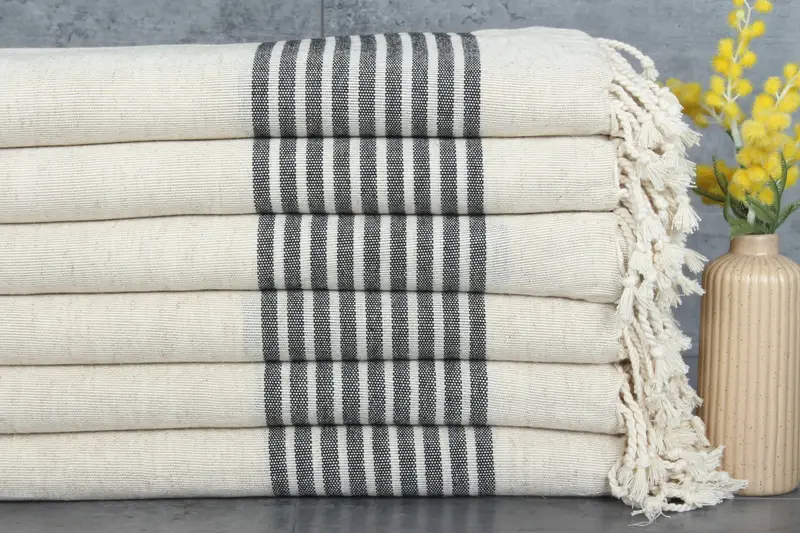 Ensuring premium quality, the Turkish towels are characterized by their 100% organic cotton composition, which results in superior absorbency. These towels, with dimensions of 38x71 inches or 95x180 centimeters, have a weight of 260 grams. Hand-woven with meticulous attention to detail, they may exhibit tolerances of up to 1-2.5 cm.