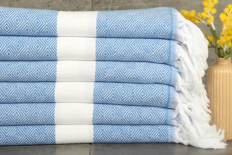 Ensuring superior absorbency, these towels are crafted from 100% organic Turkish cotton, dyed with natural colors. Resulting in a lightweight texture, the towels measure 40x71 inches or 100x180 centimeters, weighing 360 grams with a weaving tolerance of 1-2.5 cm. Characterized by a pre-shrunk status, customization includes embroidery, with orders shipped from either the US or Turkey. Free shipping is available for orders over 35 USD and is complemented by a comprehensive return policy.