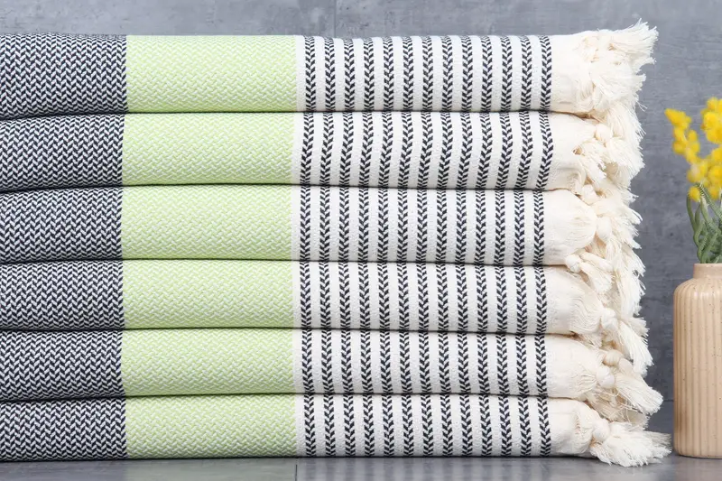 Characterized by its 100% organic Turkish cotton, the Turkish bath towel is renowned for its superior absorbency and durability. Weighing 390 grams, the towel offers a substantial feel, enhanced by naturally dyed colors that maintain vibrancy over time. With dimensions of 40x71 inches or 100x180 centimeters, these towels are meticulously hand-woven, allowing for slight variations of 1-2.5 centimeters.