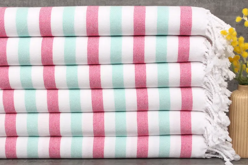Turkish towels and blankets are made from 100% organic Turkish cotton, ensuring durability and natural absorbency. Each piece, characterized by its natural dyeing process, weighs 330 grams with dimensions of 40x67 inches (100x170 centimeters), allowing for a comprehensive range of applications. Turkish towels are pre-shrunk and can be embroidered to meet specific needs, with shipping to the USA within 2-5 days. Customers have the option for free shipping on orders over $35 and can expect a detailed return/exchange policy outlined on our homepag...