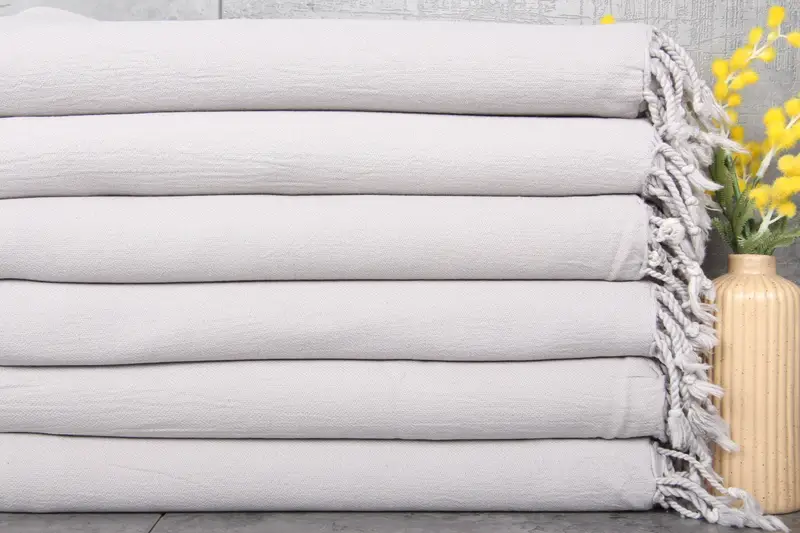 Turkish towels are characterized by their organic cotton composition, which results in superior absorbency and softness. Fabrics are woven from 100% organic Turkish cotton, ensuring natural dyeing and high durability. These towels possess a weight of 270 grams, with dimensions of 40x63 inches (100x160 centimeters), allowing for versatility in various applications.