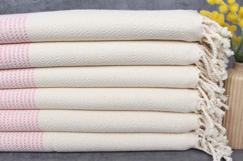 Pure organic cotton, characterized by its natural dye and high absorbency, is utilized in creating the towels. They exhibit enhanced water absorption with each wash, ensuring optimal durability. Each piece measures 40x71 inches or 100x180 centimeters, weighing 450 grams with a tolerance of 1-2.5 cm due to hand-weaving.