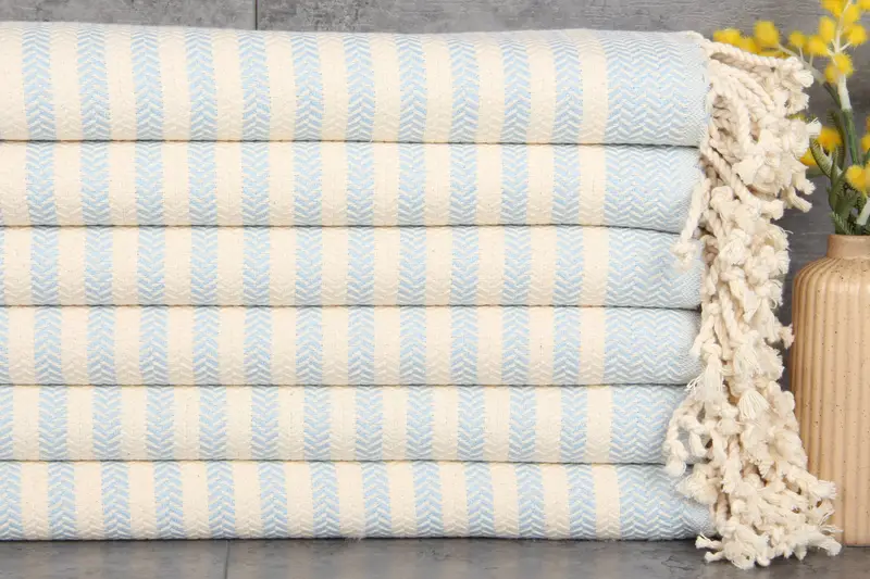 Turkish towels are distinguished by their superior fiber composition, consisting entirely of 100% organic Turkish cotton. These towels are characterized by their high absorbency, ensuring efficient water uptake. Their natural dye coloring enhances the aesthetic appeal without compromising functionality.