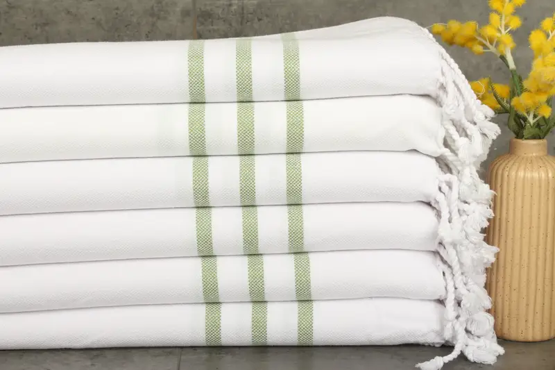 Turkish Towels, characterized by their superior quality, are meticulously crafted from 100% organic cotton or recycled cotton, ensuring hypoallergenic properties and enhanced durability. Each towel's fiber composition results in a weight of 100 grams and dimensions of 40x24 inches (60x100 centimeters). The towels are hand-woven, allowing for a tolerance of 1-2.5 cm in dimensions.