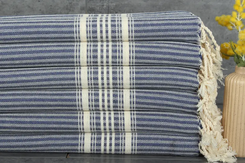 Turkish towels, renowned for their high-quality materials, are characterized by 100% organic Turkish cotton with natural dyes. Ensuring a plush and absorbent product, their organic fibers absorb moisture effectively, resulting in improved absorbency with each wash. Weighing 90 grams and measuring 18x40 inches (45x100 centimeters), these towels are meticulously hand-woven with allowable tolerances of 1-2.5 cm.