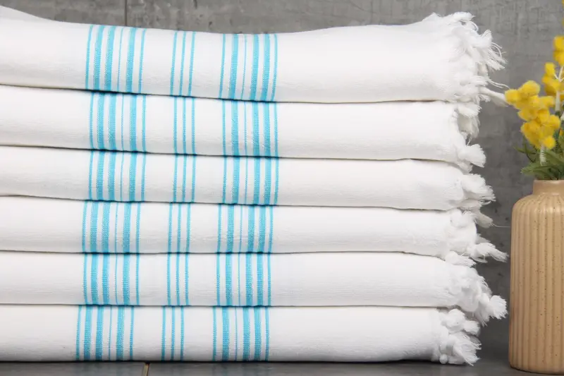 Turkish towels are characterized by their use of 100% organic Turkish cotton, ensuring a naturally soft and absorbent texture. Weighing 400 grams, these towels maintain dimensions of 40x71 inches (100x180 centimeters), with a hand-weaving tolerance of 1-2.5 centimeters. The towels exhibit superior absorbency, particularly after each washing, as the cotton fibers enhance water retention.