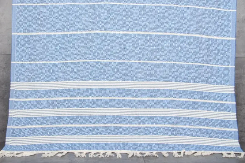 Characterized by the use of %100 organic Turkish cotton, these towels ensure superior absorbency and softness, enhancing durability with each wash. Resulting in a fiber composition optimized for various applications, the towels weigh 440 grams and measure 38x69 inches or 95x175 centimeters. Hand-weaving introduces natural tolerances of 1-2.5 cm.
