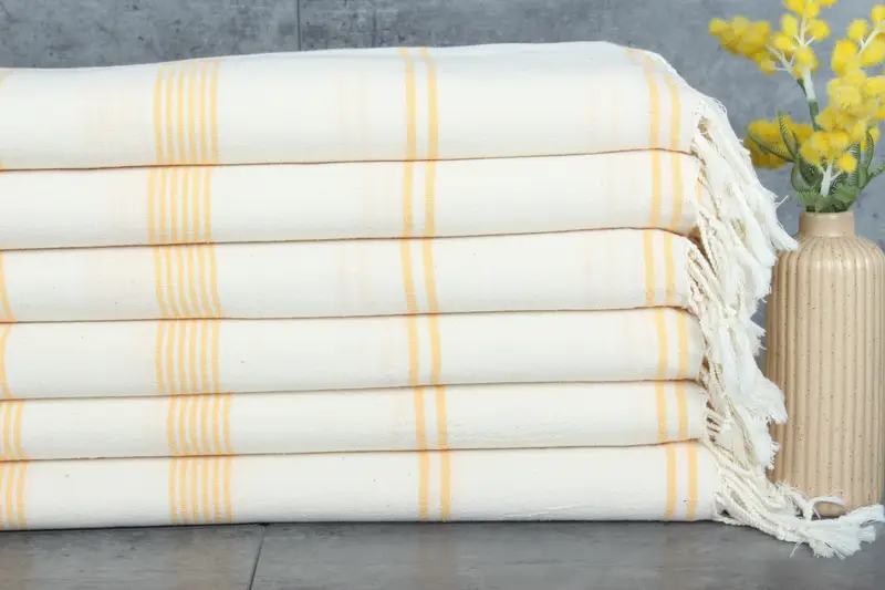 Produced exclusively from 100% organic Turkish cotton, these towels exhibit superior absorbency. This ensures that after each wash, the cotton fibers become more water-absorbent, enhancing overall utility. Characterized by dimensions of 36x71 inches or 90x180 centimeters, these towels weigh 290 grams, offering a balance of durability and softness. Each piece may have slight hand-weaving variances within 1-2.5 centimeters.