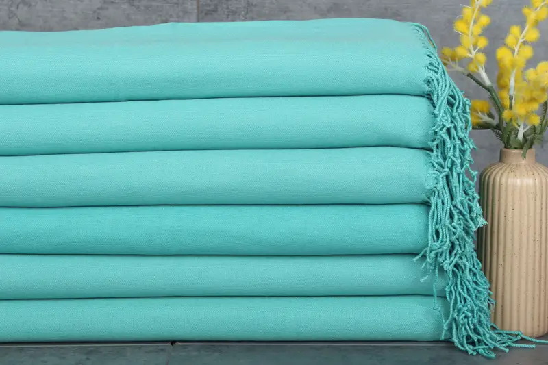 The product utilizes 100% organic Turkish cotton, ensuring exceptional absorbency and a plush texture. Characterized by a weight of 140 grams, it spans 28x67 inches or 70x170 centimeters, with hand-weaving tolerances of 1-2.5 centimeters. This results in towels that absorb more water with each wash, enhancing their utility.