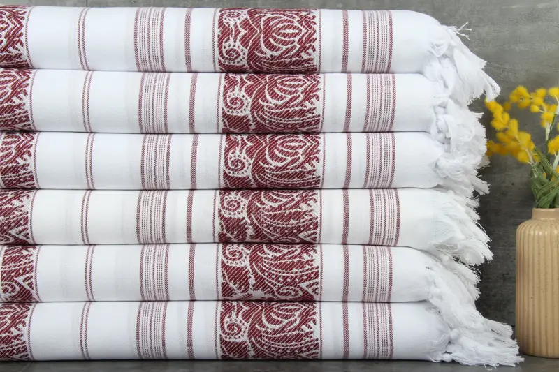 Our range of Turkish towels and blankets are characterized by their 100% organic Turkish cotton construction, ensuring superior softness and absorbency. Each product, like the 40x63 inches/100x160 centimeters blanket, weighs 295 grams and is hand-woven to allow for dimensional tolerances of 1-2.5 centimeters. These towels have been pre-shrunk to avoid any shrinkage post-wash, and are recommended to be washed separately for the first 2-3 uses, thereafter they can be washed in the normal load.