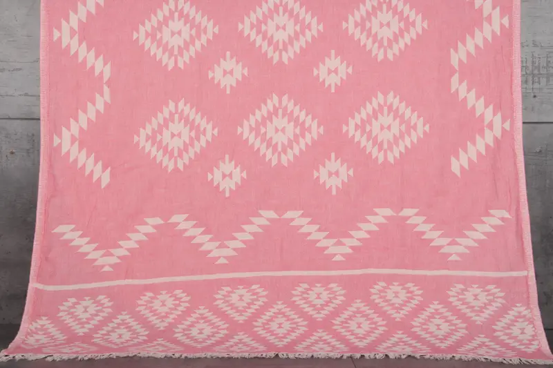The towels are crafted from 100% organic Turkish cotton, ensuring natural and eco-friendly fiber composition. Resulting in enhanced absorbency, the towels measure 36x71 inches or 90x180 centimeters and possess a weight of 320 grams. Hand-woven construction allows for tolerances of 1-2.5 centimeters in dimensions.