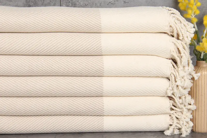 Characterized by 100% organic Turkish cotton, these towels exhibit superior absorbency, ensuring rapid water wicking and effective drying. The towels' dimensions are 40x71 inches or 100x180 centimeters, and their weight is 430 grams, resulting in durable yet lightweight fabric. Pre-shrunk to mitigate shrinkage, they retain their shape after washing. Dimensions may vary by 1-2.5 cm due to hand-weaving tolerances.