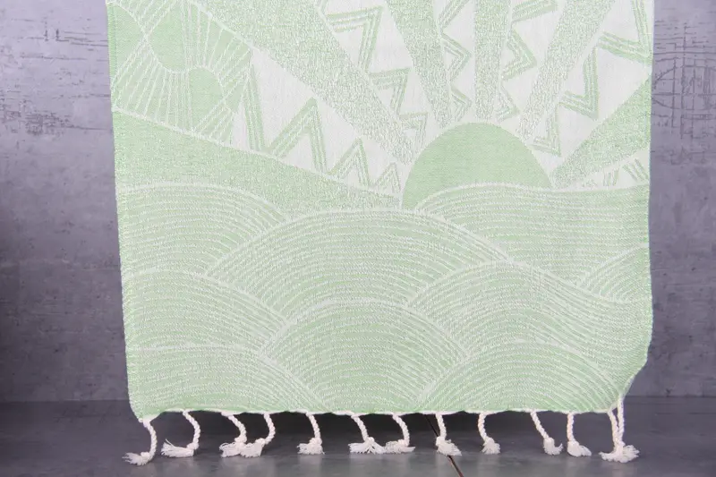The towels are crafted from 100% organic Turkish cotton, ensuring natural dye processes and high absorbency. Each towel exhibits superior fiber composition, with dimensions of 18x36 inches or 45x90 centimeters, and a weight of 100 grams. Hand-weaving results in tolerances of 1-2.5 cm, providing customization and artisanal quality.