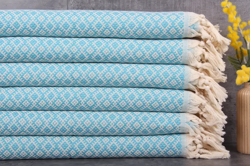 Specifically, kitchen towels, categorized under kitchen and tea towels, are designed with sub-category specifics. Their secondary color complements the diamond turquoise design, ideal for personalized gifts. These towels are crafted to withstand multip...