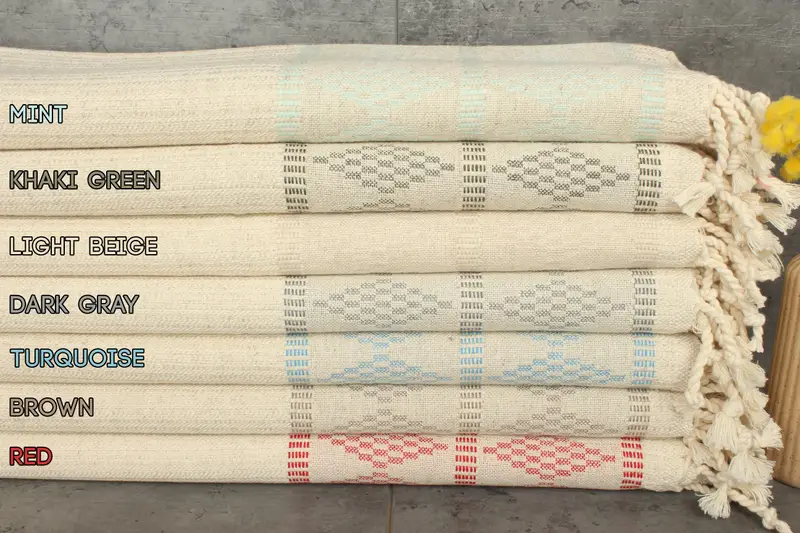 Weaving is performed on hand looms, ensuring each towel retains its natural dye colors and structural integrity. This meticulous process allows for customizable designs and bulk orders, accommo...