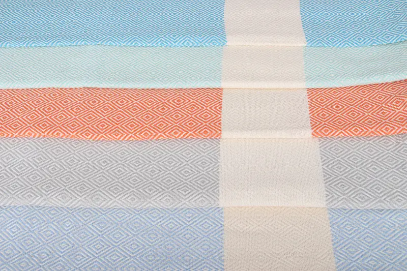 Turkish towels, characterized by their superior absorbency and softness, are crafted from 100% organic Turkish cotton. This organic fiber composition ensures high-quality absorbency, making them ideal for various applications. Each towel weighs 220 grams per square meter, with towels and throws ranging from 20x36 inches (50x90 cm) to 40x70 inches (100x180 cm), and hand-woven with a tolerance of 1-2.5 cm.