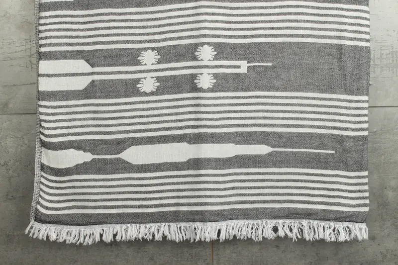 Characterized by a fiber composition of organic and recycled cotton, this blanket ensures high absorbency, becoming even more absorbent after each wash. Resulting in a weight of 550 grams, it measures 60x83 inches or 150x210 centimeters, with a hand-weaving tolerance of 1-2.5 cm. Ensuring customization options for embroidery, this blanket is pre-shrunk, offering a sustainable choice for various household uses.