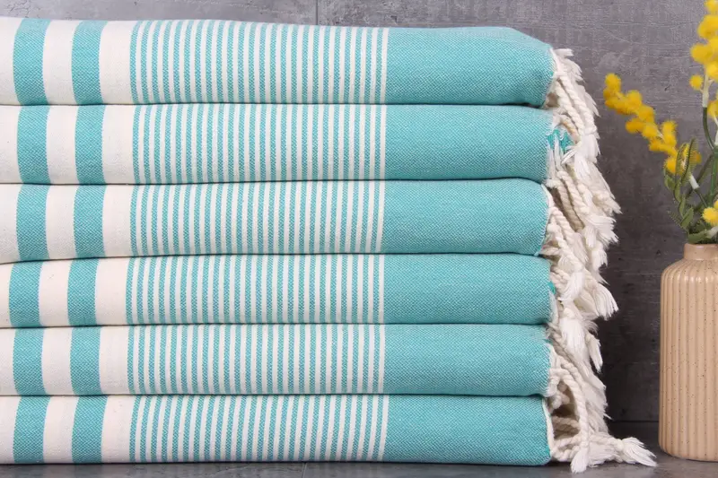 Turkish towels are characterized by their 100% organic Turkish cotton composition, naturally dyed for a muted palette. Ensuring superior absorbency, these towels absorb more water with each wash, with fibers that are hand-woven to within a tolerance of 1-2.5cm. Measuring 40x71 inches or 100x180 centimeters and weighing 340 grams, they provide versatility for various uses. Custom embroidery services are available, with personalized orders adding two additional days for completion. Pre-shrunk, these towels should be washed separately for the firs...