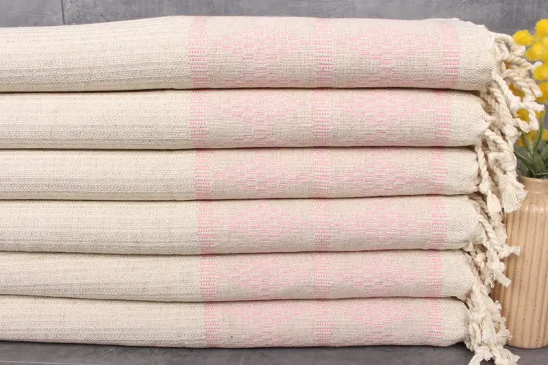 Comprising 100% organic Turkish cotton, these towels exhibit superior absorbency, ensuring efficient moisture wicking. Each towel, weighing approximately 120 grams, measures 20x40 inches or 50x100 centimeters, with hand-weaving tolerances of 1-2.5cm. Characterized by their lightweight yet durable construction, these towels are pre-shrunk, maintaining their integrity after washes.