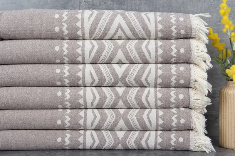 Characterized by 100% organic Turkish cotton, our towels exhibit superior absorbency, ensuring effective water retention. Weighing 128 grams and sized at 24x40 inches or 60x100 centimeters, these towels provide ample coverage. Tolerances in hand-weaving may result in slight dimension variations of 1-2.5cm.