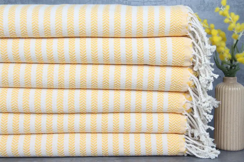 Turkish towels, blankets, and hand towels are characterized by their use of 100% organic Turkish cotton, ensuring natural dye colors and enhanced absorbency. These towels typically weigh 115 grams and have dimensions of 18x40 inches (45x100 centimeters). Variability in hand-weaving may result in tolerances of 1-2.5 cm.