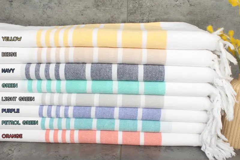 The product specifications include dimensions, weight, and tolerances of the hand-weaving process. The towels are made from 100% organic Turkish cotton, resulting in superior absorbency and quality. Each piece weighs 80 grams and measures ...