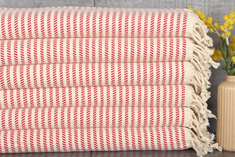These hand towels are characterized by their 100% organic Turkish cotton construction, ensuring superior absorbency and durability. Each towel measures 20x40 inches or 50x100 centimeters and weighs approximately 122 grams. The hand-weaving process allows for tolerances of 1-2.5 centimeters.