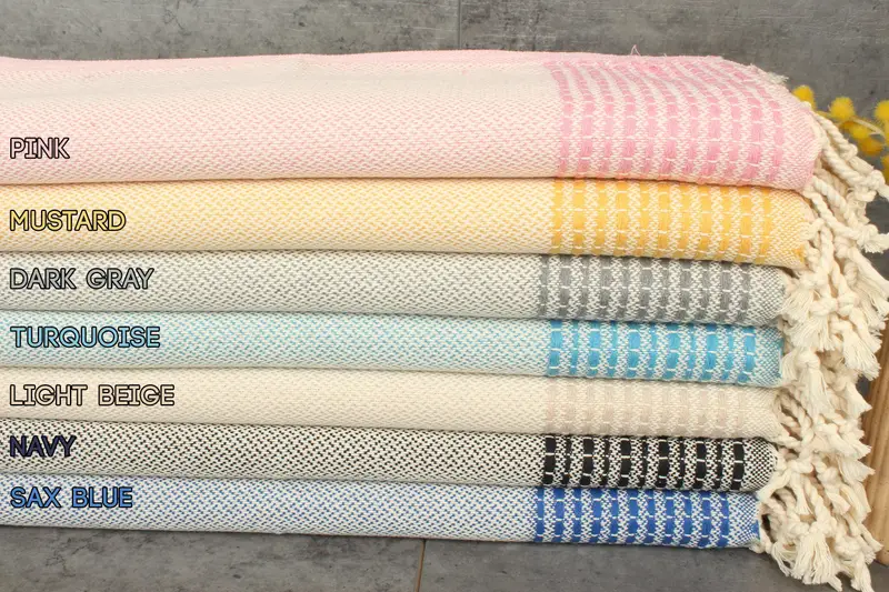 Characterized by high absorbency and durability, these Turkish beach towels, hand towels, and blankets are crafted from 100% organic Turkish cotton with natural dye. They are hand-woven with attention to detail, resulting in a weight of 120 grams and dimensions of 40x20 inches or 50x100 centimeters. Tolerance for hand-woven pieces ranges between 1-2.5 centimeters.