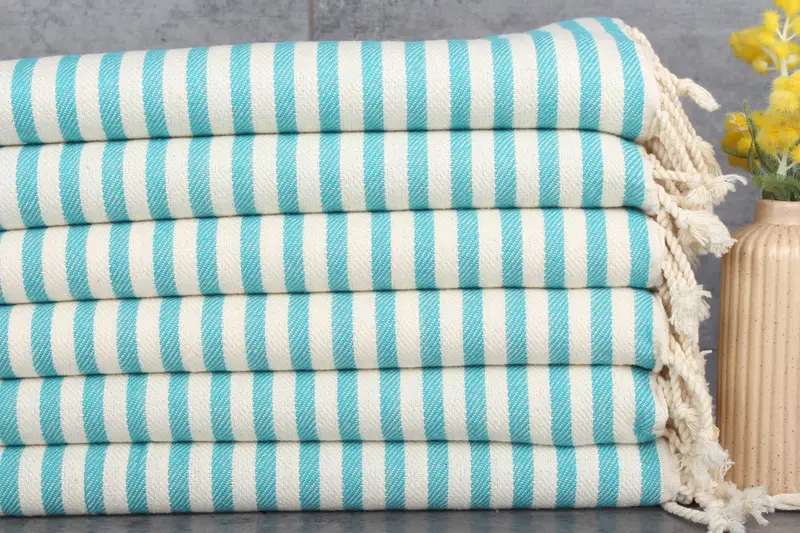 Organic cotton towels measure 40x18 inches, translating to 45x100 centimeters, and each weighs 100 grams. Hand-woven precision results in tolerances of 1-2.5cm, ensuring uniformity.