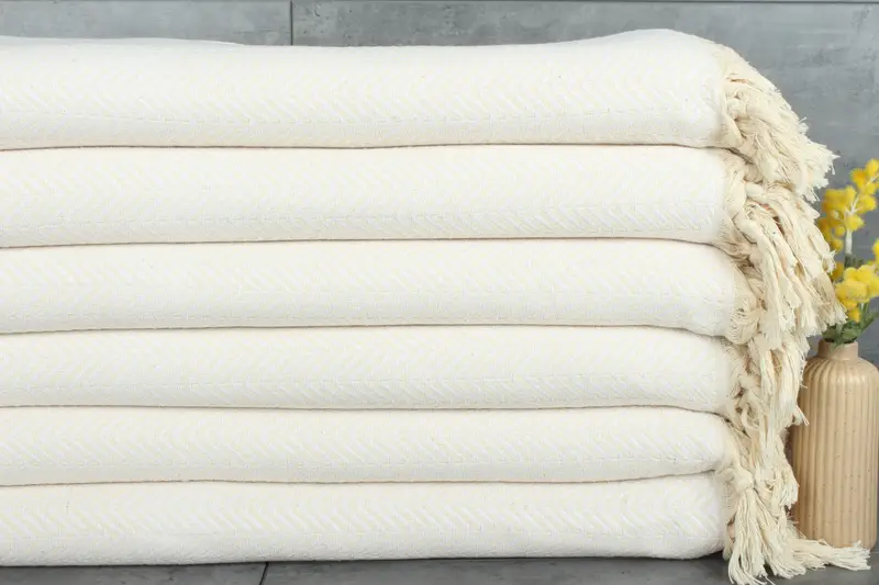 Ensuring maximum absorbency and softness, the cotton material is characterized by its 1130 grams weight per 91x75 inches or 190x230 centimeters. Hand-woven with meticulous precision, this Turkish cotton blanket exhibits variations up to 1-2.5cm in dimensions, enhancing its artisanal charm. Resulting in a pre-shrunk and ready-to-use item, the blanket is shipped within 2-6 days globally, with options for embroidery customization and straightforward return terms.