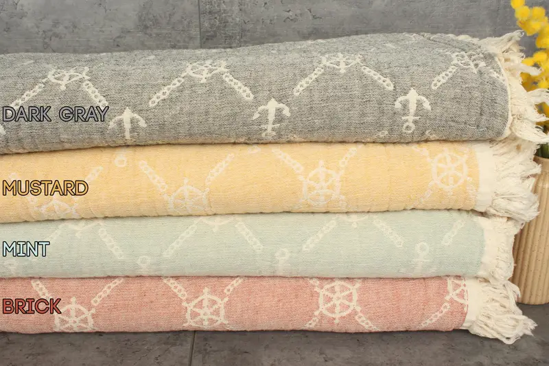 Dimensions for these towels and blankets are 87x67 inches or 220x170 centimeters, with weights falling between 1200 grams. Hand-weaving technique...