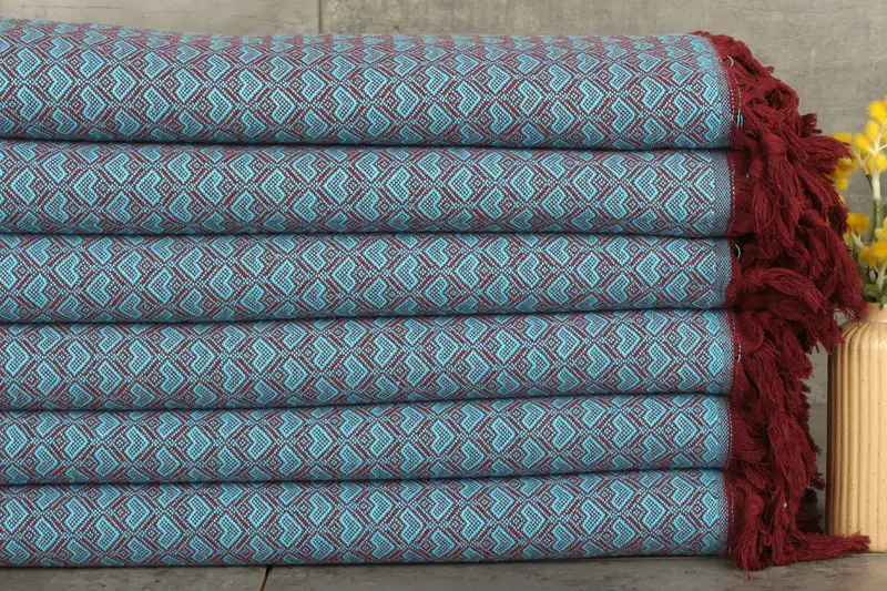 Characterized by organic and recycled cotton, the blanket provides enhanced absorbency and durability, ensuring its fibers remain resilient with each wash. Measuring 75x87 inches (190x220 cm), weighing 1100 grams, and displaying slight hand-weaving tolerances of 1-2.5 cm, this throw guarantees both precision and comfort. Embroidery customization options are available, with products pre-shrunk and shipped promptly from either US or Turkish warehouses, accompanied by clear return terms.