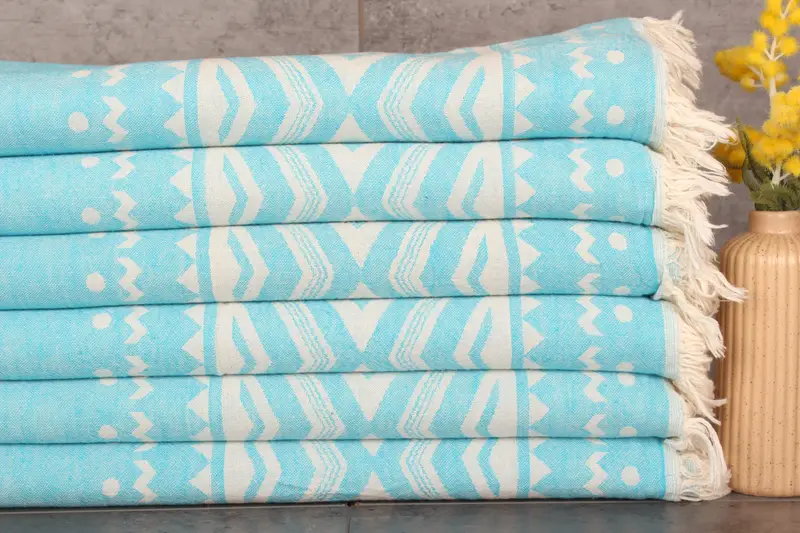Characterized by a blend of organic and recycled cotton, the Turkish Hand Towel is comprised of fibers that ensure superior absorbency and durability. The 24x40 inches towel, weighing 120 grams, adheres to hand-weaving tolerances of 1-2.5 cm. Its primary dimensions of 60x100 cm are designed to maximize usability, ensuring each towel meets specified standards.