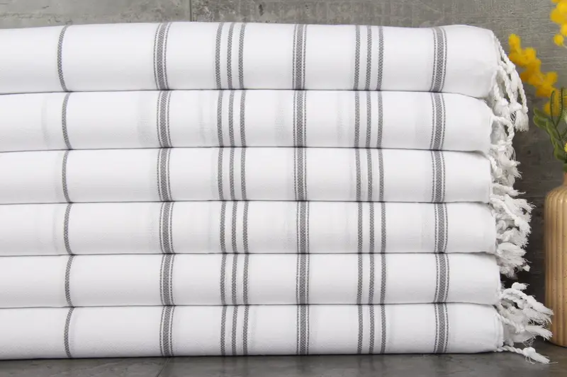 Crafted from 100% organic Turkish cotton, the towels exhibit superior absorbency, ensuring efficient water absorption with each wash. Characterized by dimensions of 24x36 inches (60x90 cm) and a weight of 100 grams, these towels allow for a 1-2.5 cm tolerance in hand-weaving.