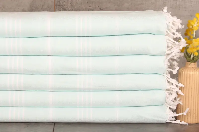 This mint cotton blanket is woven using traditional techniques such as shibori and batik, ensuring a unique and intricate pattern. Characterized by its soft and breathable qualities, the blanket is a blend of recycled and organic cotton, contributing to its sustainability. Absorption capacity improves with each wash, with initial wash recommended separately for best results.