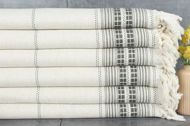Designed for precision, Turkish hand-woven towels have tolerances of 1-2.5 cm in dimensions, maintaining consistency in quality. Each product is 95x93 inches with a border pattern, ensuring aesthetic ...