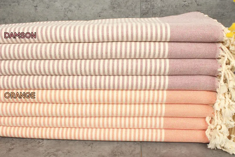 Turkish towels are crafted using 100% organic Turkish cotton, ensuring durability and sustainability. Characterized by high absorbency, these towels weigh 132 grams and measure 40x24 inches (100x60 cm). The hand-weaving process results in minor size variances of 1-2.5 cm.