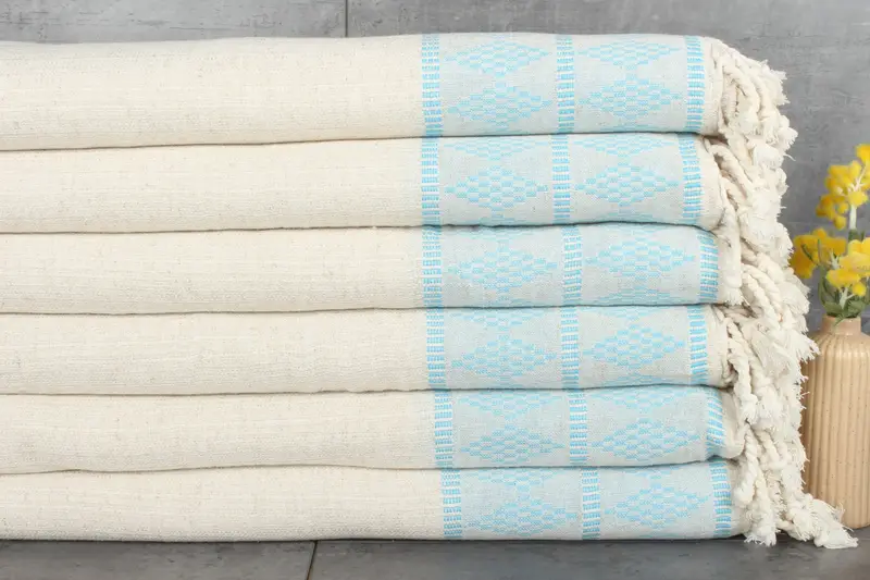Organic cotton fibers, ensuring durability and breathability, result in a highly absorbent textile. The blanket measures 99x87 inches or 250x220 centimeters and weighs 1500 grams, with hand-weaving tolerances of 1-2.5 cm. Embroidery customization for personalization is available, along with pre-shrunk status for consistent sizing. Shipping is expedited, with tracking provided for all orders, ensuring delivery within 2-6 days depending on the region. Returns and exchanges are managed through designated channels, facilitating customer satisfactio...