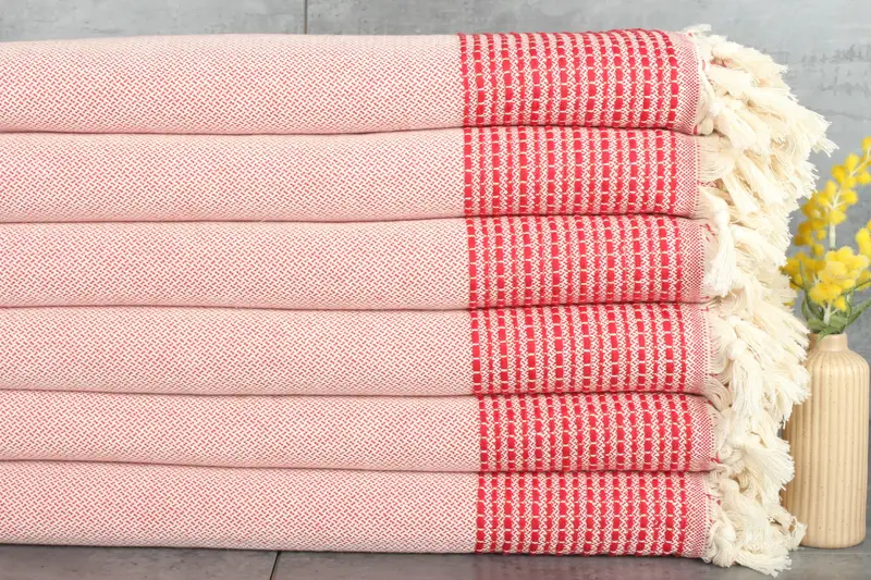 Produced with 100% organic Turkish cotton, the blanket ensures hypoallergenic comfort and superior absorbency. Characterized by meticulous hand-weaving, the blanket results in a weight of 1420 grams and dimensions of 95x91 inches or 230x240 centimeters. Tolerances in hand-weaving allow for variations of 1-2.5 centimeters.