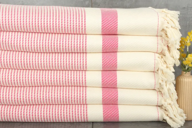 Turkish towels and blankets are characterized by their organic cotton composition, ensuring superior absorbency and a soft texture. Resulting in a weight of 1100 grams, these towels and blankets are available in sizes such as 91x83 inches or 210x230 centimeters. Variations within the dimensions can be expected up to 1-2.5cm due to hand-weaving techniques.