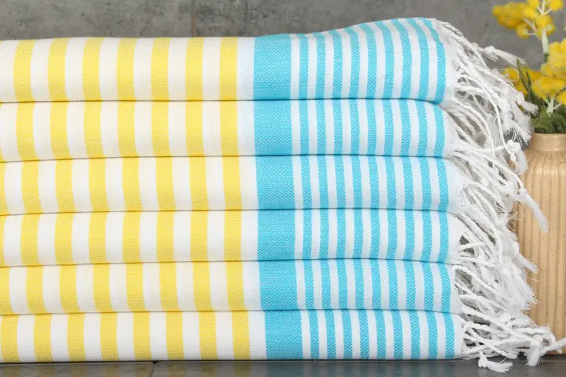 Organic cotton ensures sustainability and superior absorbency, resulting in towels that become more absorbent after each wash. Characterized by dimensions of 40x24 inches or 60x100 centimeters, these towels are meticulously hand-woven with tolerances of 1-2.5cm. Embroidery customization is available, with orders over 35 USD receiving free shipping. Towels are shipped pre-shrunk and within 2-6 days depending on the region, with US fulfillment from a US warehouse. For international orders, shipment originates from Turkey.