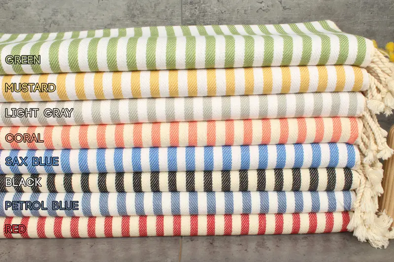 Fiber composition ensures durability and high absorbency, with the towels made from 100% organic Turkish cotton. Characterized by natural dyeing, each piece measures 40x18 inches or 45x100 centimeters, with a weight of 100 grams. Allowing for hand-weaving tolerances of 1-2.5cm, these towels maintain consistent quality. Embroidery customization is available with an additional two days for processing. Pre-shrunk towels are shipped within the same day of order, with free shipping on orders over 35 USD. Return terms are outlined on our homepage, wi...