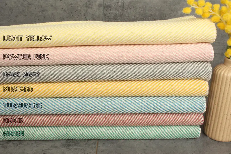 Dimensions of Turkish towels are precisely 36x16 inches (40x90 centimeters) while their weight is 100 grams. The natural dyeing process and pre-shrunk status of the towels enhance their appeal for various applications. Towels ar...
