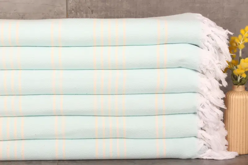 Ensuring superior quality, these throws are crafted from 100% Turkish cotton, characterized by their high absorbency and soft texture. Resulting in a product that is both durable and gentle on the skin, these throws feature dimensions of 71 x 95 inches or 180 x 240 centimeters, with an approximate weight of 850 grams, providing a luxuriously light yet substantial feel. Hand-woven with care, these throws have tolerances of 1-2.5 cm, ensuring each piece retains the artisan quality expected.
