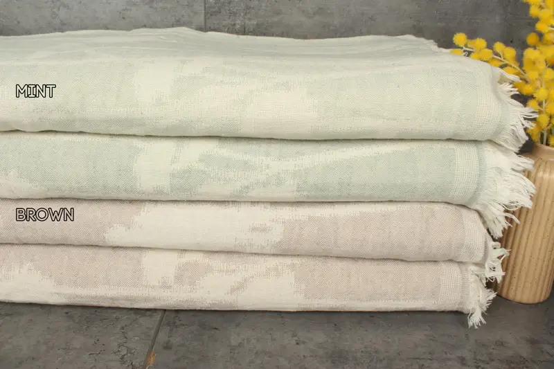 Featuring cotton characterized by its softness and durability, Turkish organic cotton towels and blankets are renowned for their exceptional absorbency. Ensuring superior performance with each use, the towels and blankets absorb more water after every wash, resulting in a more absorbent product over time. Characterized by a consistent width of 82.7 inches and length of 90.5 inches, these items possess a weight of 900 grams, with manufacturing tolerances of 1-2.5cm.