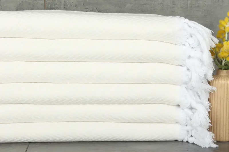 Our collection ensures high-quality absorbency and durability, characterized by the use of organic cotton towels and blankets. Each towel and blanket is made from 100% organic Turkish cotton, weighing 1100 grams with dimensions of 95x79 inches (200x240 centimeters). These items, woven by hand, allow for slight variations within a tolerance of 1-2.5 centimeters.