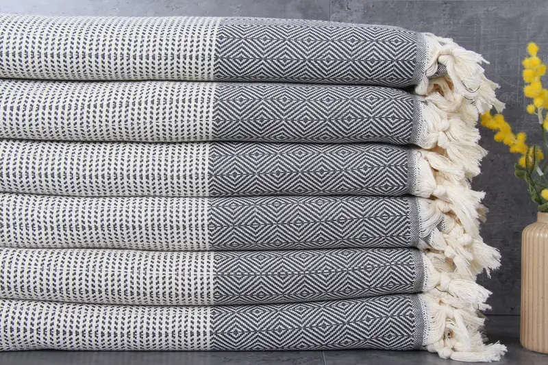 Comprised predominantly of 100% organic Turkish cotton, these towels and blankets are renowned for their superior absorbency and durability, ensuring long-lasting softness and effectiveness. Characterized by dimensions of 71x79 inches or 180x200 centimeters and weighing 1100 grams, each piece maintains a consistency with hand-weaving tolerances of 1-2.5 cm. Custom embroidery services are available, with personalized orders requiring additional lead time. Pre-shrunk towels and blankets are shipped promptly, offering a choice between standard and...